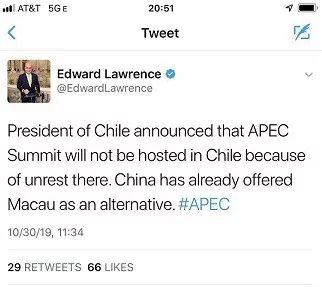 (智利總統(tǒng)宣布因為騷亂不在智利舉辦APEC峰會,中國提議澳門作為備選)