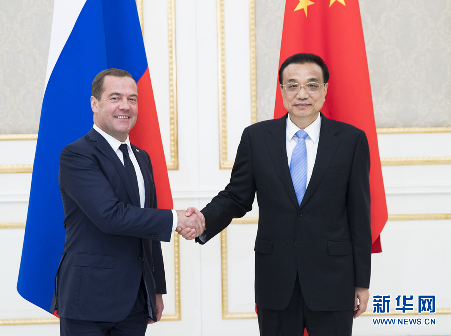 新華社塔什干11月1日電(記者白潔 蔡國棟)當(dāng)?shù)貢r(shí)間11月1日晚,國務(wù)院總理李克強(qiáng)在塔什干會見出席上海合作組織成員國總理會的俄羅斯總理梅德韋杰夫。