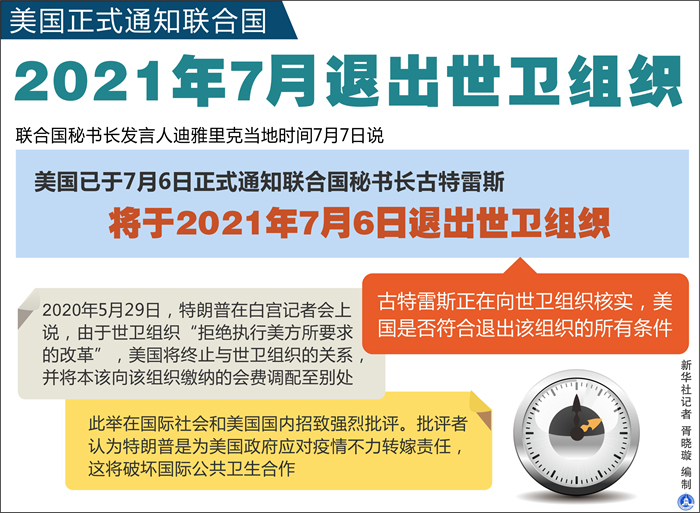 (XHDW)(1)美國(guó)正式通知聯(lián)合國(guó)明年7月退出世衛(wèi)組織?