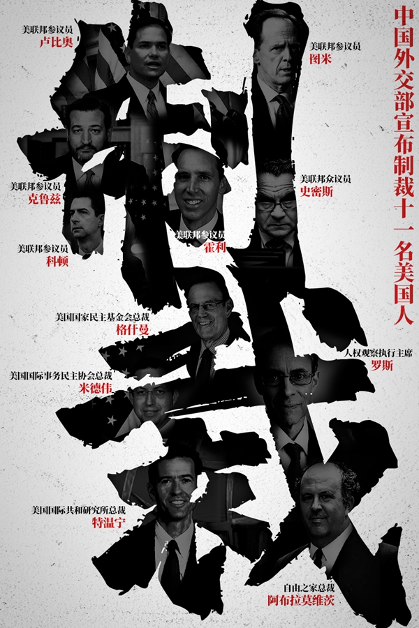 趙立堅(jiān)說,針對(duì)美方錯(cuò)誤行徑,中方?jīng)Q定即日起對(duì)在涉港問題上表現(xiàn)惡劣的美聯(lián)邦參議員盧比奧、克魯茲、霍利、科頓、圖米,聯(lián)邦眾議員史密斯,以及美國(guó)國(guó)家民主基金會(huì)總裁格什曼、美國(guó)國(guó)際事務(wù)民主協(xié)會(huì)總裁米德偉、美國(guó)國(guó)際共和研究所總裁特溫寧、“人權(quán)觀察”執(zhí)行主席羅斯、“自由之家”總裁阿布拉莫維茨實(shí)施制裁。