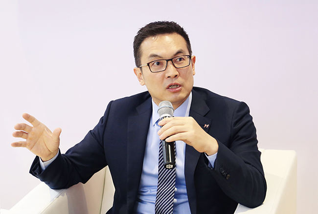 強(qiáng)生全球資深副總裁、中國(guó)區(qū)主席宋為群在進(jìn)博會(huì)上接受媒體采訪(fǎng)