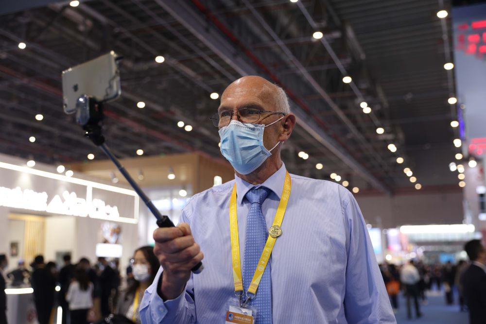 11月7日,羅伊在進博會場館內(nèi)自拍留念。