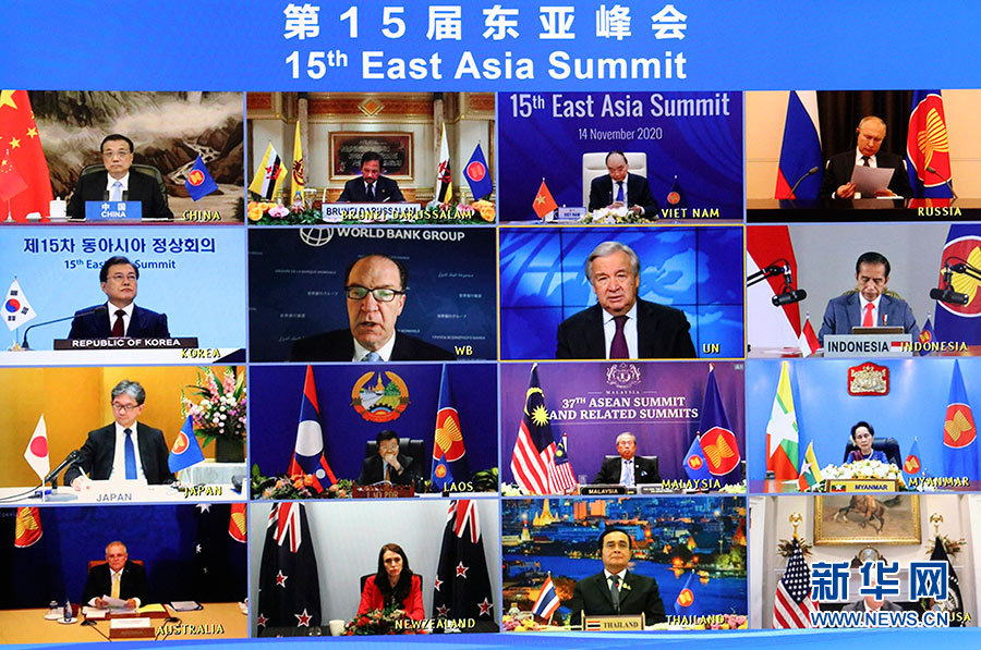 新華社北京11月14日電 國(guó)務(wù)院總理李克強(qiáng)14日晚在人民大會(huì)堂出席第15屆東亞峰會(huì)。東盟十國(guó)領(lǐng)導(dǎo)人以及俄羅斯總統(tǒng)普京、韓國(guó)總統(tǒng)文在寅、日本首相菅義偉、澳大利亞總理莫里森、新西蘭總理阿德恩、印度外長(zhǎng)蘇杰生、美國(guó)總統(tǒng)國(guó)家安全事務(wù)助理奧布萊恩等與會(huì)。越南總理阮春福主持會(huì)議。會(huì)議以視頻形式舉行。