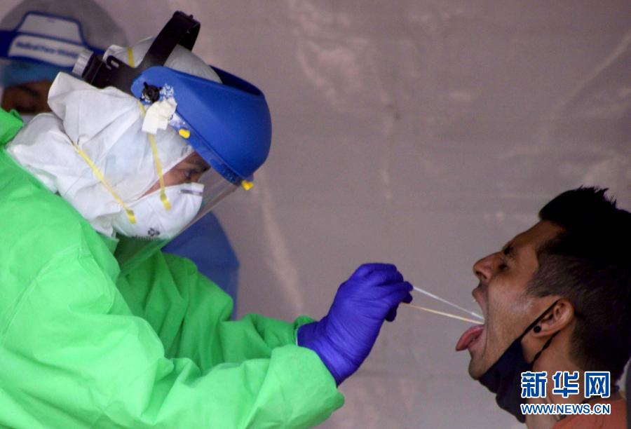 11月14日,在墨西哥首都墨西哥城,醫(yī)務(wù)人員為一名男子采集檢測樣本。