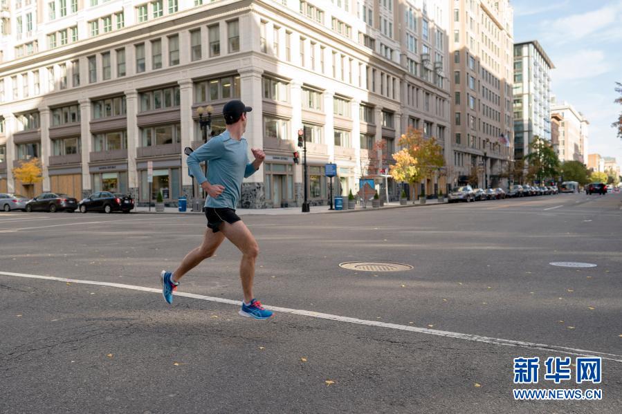 11月19日,在美國(guó)華盛頓,一名男子跑步經(jīng)過(guò)車(chē)輛稀少的路口。新華社記者 劉杰 攝
