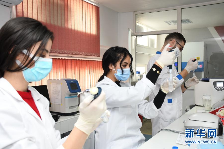 11月25日,在摩洛哥拉巴特,醫(yī)務(wù)人員在實驗室里工作。新華社發(fā)(查迪攝)
