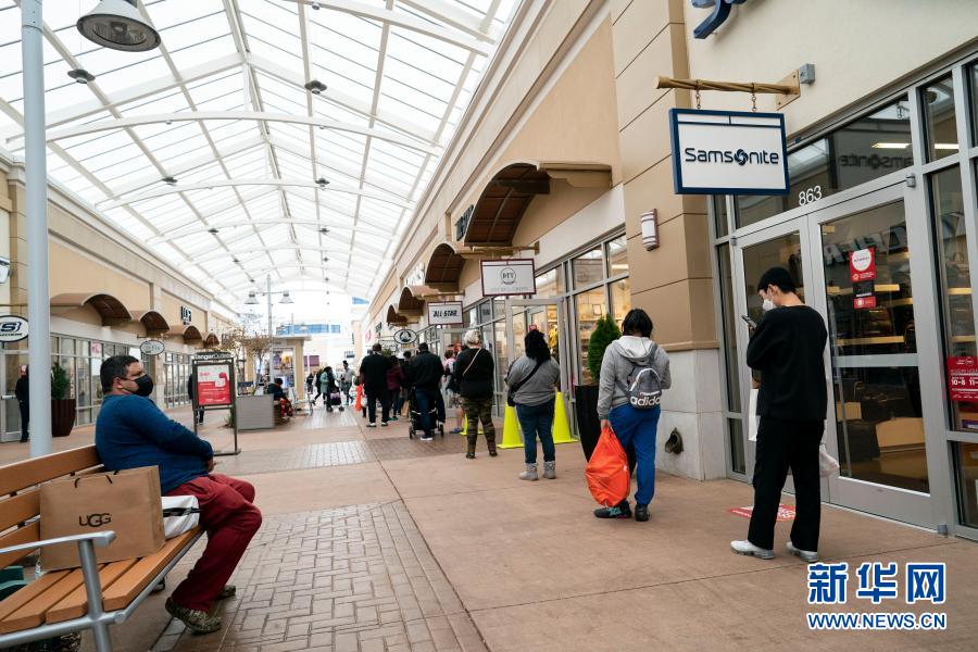 11月27日,人們?cè)诿绹R里蘭州國家港灣一處購物中心排隊(duì)等待進(jìn)店購物。