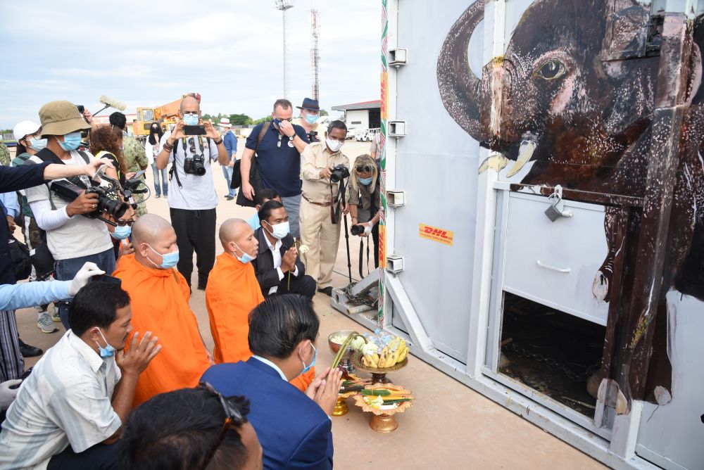 經(jīng)歷7小時飛行后,“卡萬”抵達(dá)柬埔寨東北部城市暹粒。然后它將經(jīng)歷數(shù)小時卡車運(yùn)輸?shù)诌_(dá)保護(hù)區(qū)——那里有80多頭象。