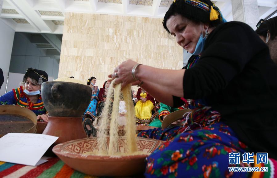 12月17日,在阿爾及利亞首都阿爾及爾,柏柏爾婦女在一個(gè)文化活動(dòng)上制作“古斯古斯”。