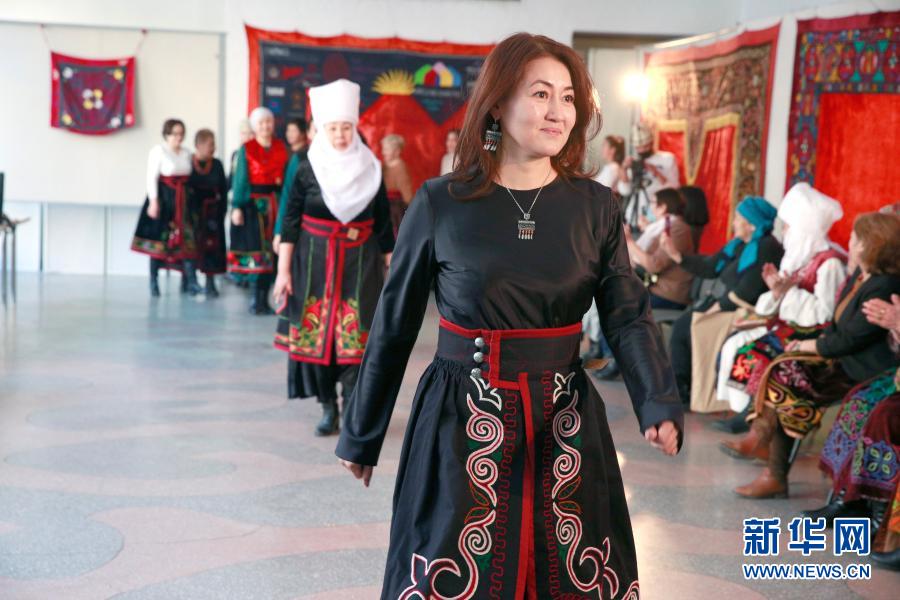當(dāng)日,吉爾吉斯斯坦首都比什凱克的國(guó)家美術(shù)館內(nèi)舉行傳統(tǒng)手工藝品比賽,其中裙袍大賽引人關(guān)注。裙袍是吉爾吉斯族的傳統(tǒng)服飾,它看起來(lái)像一條擺裙,一般穿在連衣裙或背心外面。裙袍的剪裁、顏色和圖案能夠反映女性的地位和狀況。