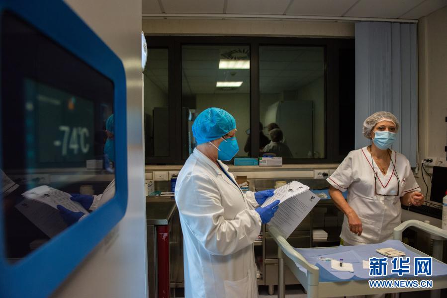 12月27日,在羅馬尼亞首都布加勒斯特一家傳染病醫(yī)院,醫(yī)務(wù)人員向媒體展示新冠疫苗。新華社發(fā)(克里斯泰爾攝)