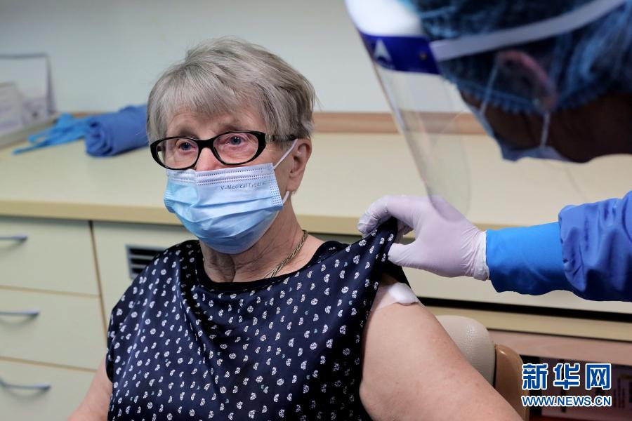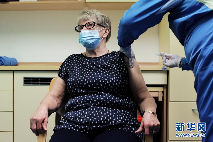 12月27日,在斯洛文尼亞首都盧布爾雅那一家養(yǎng)老院,醫(yī)務(wù)人員為一名志愿者老人注射新冠疫苗。新華社發(fā)(斯洛文尼亞政府供圖)