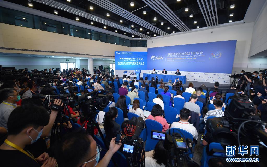 這是博鰲亞洲論壇2021年年會(huì)新聞發(fā)布會(huì)現(xiàn)場(chǎng)(4月18日攝)。新華社記者 郭程 攝