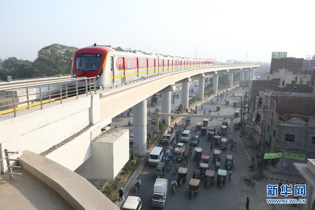 在巴基斯坦拉合爾市,一輛橙線地鐵列車準(zhǔn)備進(jìn)站(2020年10月26日攝)。當(dāng)日,巴基斯坦首條地鐵——拉合爾橙線迎來(lái)首批乘客,標(biāo)志著巴基斯坦步入“地鐵時(shí)代”。新華社記者劉天攝