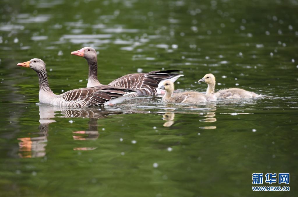 這是5月19日在德國(guó)法蘭克福的美茵河拍攝的灰雁。