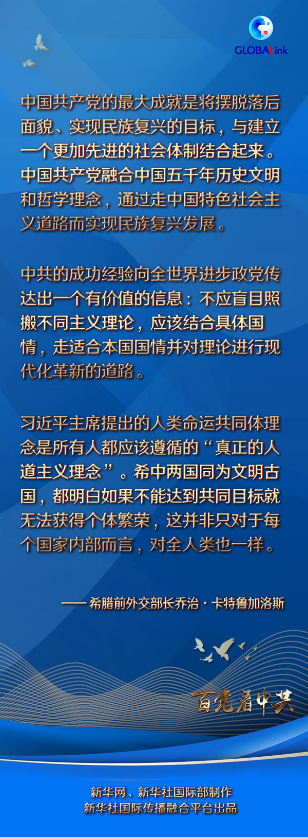 在中共百年華誕之際,卡特魯加洛斯向中國共產(chǎn)黨和中國人民送上祝福:“我相信中國人民取得的這些矚目成就還將繼續(xù)下去,相信中國共產(chǎn)黨的下一個百年能給中國人民帶來更加光明和美好的未來?!?/p>