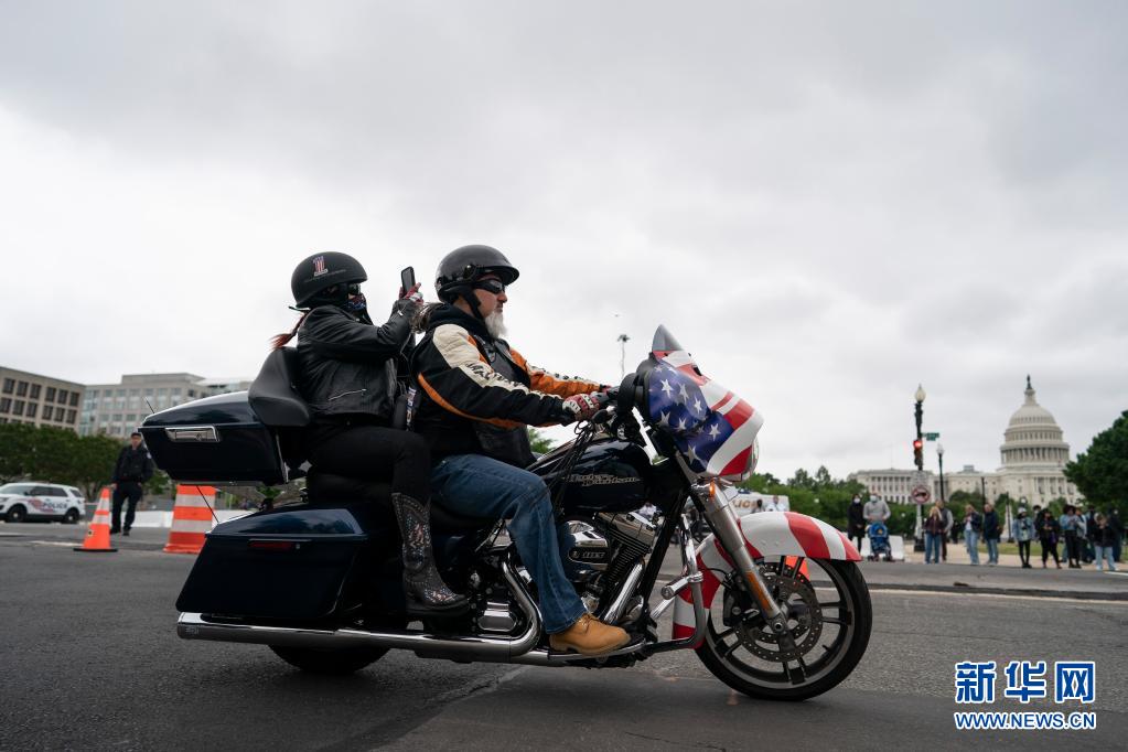 5月30日,在美國首都華盛頓,人們參加“滾雷”摩托車大游行。