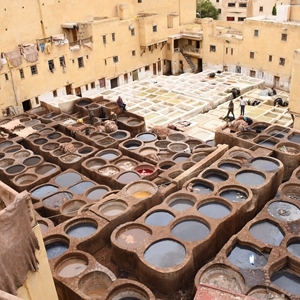 皮革業(yè)是摩洛哥的重要產業(yè)之一,非斯古城中的一些皮革染坊至今仍延用傳統(tǒng)工藝為皮革染色。