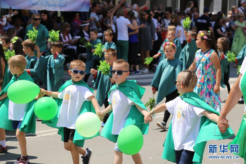 6月6日,在保加利亞卡贊勒克,小朋友參加玫瑰節(jié)游行。