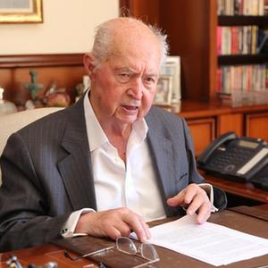 4月27日,塞浦路斯前總統(tǒng)喬治·瓦西利烏在塞浦路斯南部利馬索爾接受新華社記者專訪。